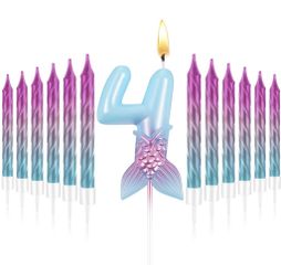 MTLEE 13 Pcs Mermaid Themed Birthday Candles, Number 4 With 12 Spiral Rainbow Candles, 2 Inch Mermaid Cake Topper Decorations Girls Birthday Party Sup$4Avondale, AZ