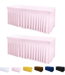 ManMengJi Table Cover and Table Skirt One-Piece for Folding Tables, 6FT Spandex Fitted Tablecloth with Ruffles Skirt for Weddings, Banquets, Parties, $25Tolleson, AZ