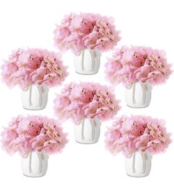 Leinuosen 6 Set Artificial Hydrangea Flowers and Plastic Vases Set Centerpieces Table Decorations Silk Fake Hydrangea Full Flowers Heads with Stems Bu$25Avondale, AZ