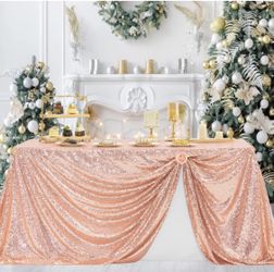 Rose Gold Christmas Sequin Table Cloths 50X80 inch for Parties, Glitter Shiny Overlay Cover Fitted Rectangle 4 FT Food Dessert Cake Tables for Birthda$10Avondale, AZ