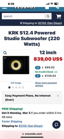 KRK S12.4 Powered Studio Subwoofer (220 Watts) !!!Brad New!!!$750El Cajon, CA