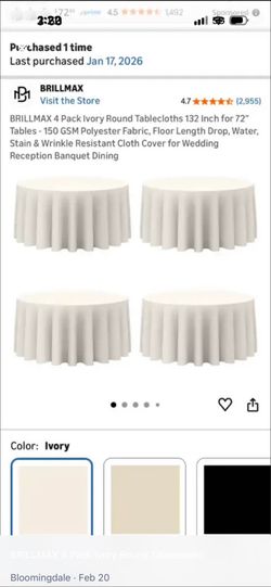 132” Round tablecloths (4)$40Valrico, FL