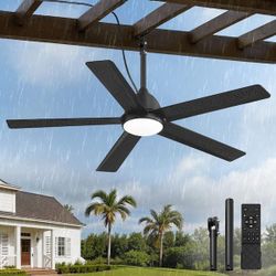 52 in. Black Outdoor Ceiling Fans with LED Lights Remote/APP Control Waterproof Downrod Fandelier DC Motor for Patio$70Pomona, CA