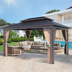 12x16FT Outdoor Hardtop Gazebo with Double Roof - Heavy-Duty Galvanized Steel Hardtop Gazebo with Breathable Netting & Zipper Curtains for Patio, Porc$1,500Fullerton, CA