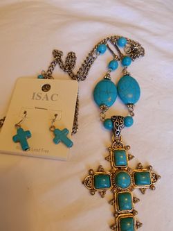 Turquoise Colored Cross Necklace And Earrings $10Colorado Springs, CO