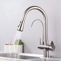 Karlstad - Three-Way Kitchen Faucet with Filter Tap & Pull-Out Spout for Kitchen Sink Brushed Nickel$100Gilroy, CA