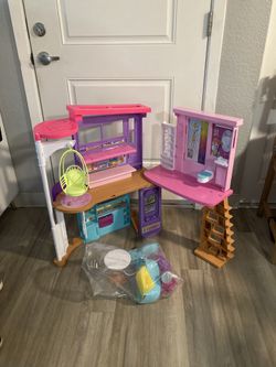 Barbie Vacation House, 2-Storey Fully-Furnished Barbie House with 6 Play Areas, Swing Chair Elevator, 30 Accessories, Fold and Store,$45Lodi, CA