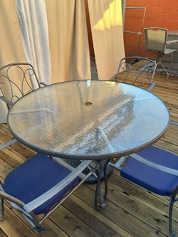 Cast iron Glass Table And 4 Chairs With Cushions$200Las Vegas, NV