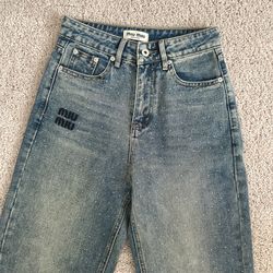 MiuMiu Rhinestone Jean Straight Leg Embroidered Logo Jeans $90Vancouver, WA