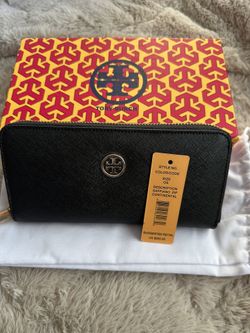 Tory Burcch Logo Long Wallet Black Round Zip Coin New Condition $100Ontario, CA
