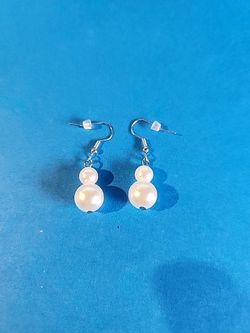 1.5" Faux Pearl Silver Tone Dangle Earrings $7Somerset, NJ