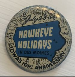 1947 Iowas 101st Anniversary Promo pin-back 2” Circle Button$5Altoona, IA