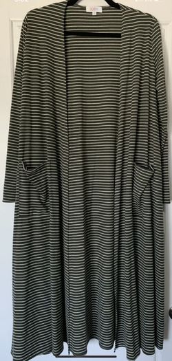 Lularoe Sarah Cardigan Duster, Army Green/Olive & White Striped, Medium, NWOT$16Altoona, IA