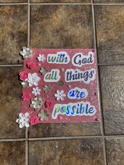 Pink Floral Graduation Cap Topper / “With God All Things Are Possible”$35Bellflower, CA