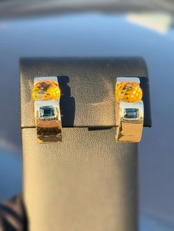14k solid yellow gold clip-on Natural Oval 7CTW Citrine & 1.1CTW Blue Topaz Emerald cut stone Earrings$1,950Boca Raton, FL