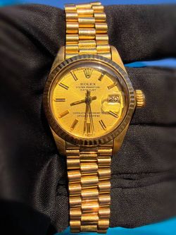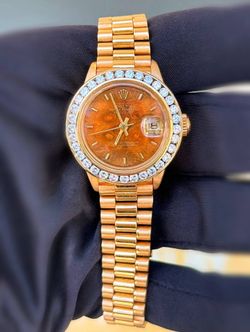 Vintage Rolex DateJust President 26 26mm Yellow Gold Rare Factory Wood Dial Ladies Watch 6917 Natural Diamond custom bezel$11,500Boca Raton, FL