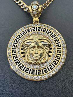 10k solid yellow gold CZ Stone Medusa Head Greek design Circular Round Medallion Pendant Charm$785Boca Raton, FL