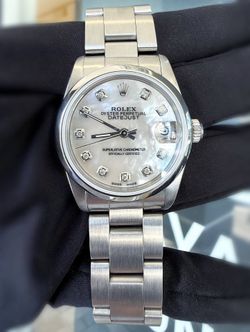 Rolex Datejust 31 31mm Midsize Stainless Steel custom MOP Diamond dial Ladies Watch 68240 smooth bezel oyster bracelet$6,500Boca Raton, FL