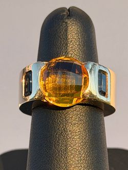 14k solid yellow gold Natural round 10CT yellow Citrine & 1.25CTW Blue Topaz Emerald cut stone lady’s ring Sz6.75$1,850Boca Raton, FL