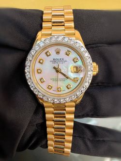 Rolex President Datejust 26 26mm 18k Yellow Gold custom Diamond MOP Dial & Natural Diamond bezel Ladies Watch 69178$12,500Boca Raton, FL