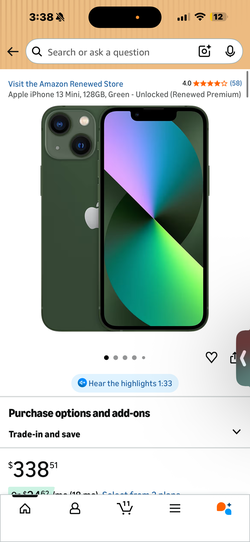 SoldPhone 13 mini 128GB Unlocked Green – Excellent Condition$250Las Vegas, NV