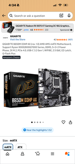 Motherboard Gigabyte B650M D3HP AX$110Las Vegas, NV