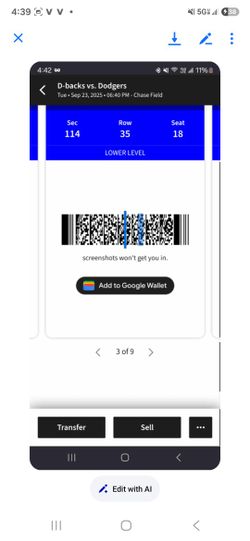 Dbacks Vs Dodgers $60Phoenix, AZ