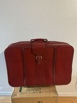 Vintage 60s 70s Large Red Vinyl Suitcase Made by Sears Buckle Closure on Wheels$65Gresham, OR