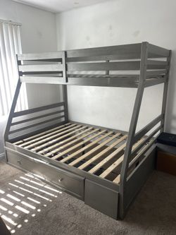 Bunk Bed Color Grey+extra Storage And Stairs(upper Twin Size)(Lower Full Size) No Mattress $350Los Angeles, CA