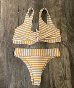 Yellow Stripe Print Bikini Set. Med top. Small high waisted bottom $40Encinitas, CA