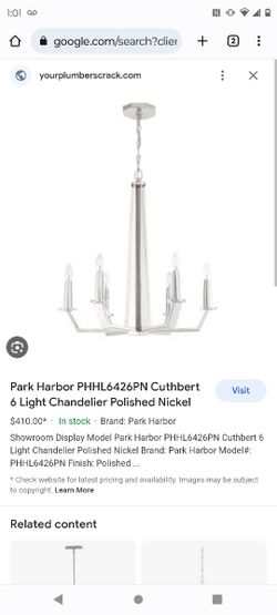 Brand New Park Harbor PHHL6426PN Cuthbert 6 Light Chandelier Polished Nickel$185Moreno Valley, CA
