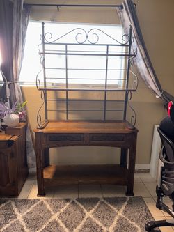 wrought iron hutch with scrolling details sits atop a wooden console base with 2 drawers.$275Bakersfield, CA