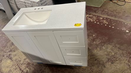 Glacier Bay Bannister 37 in. Single Sink White Bath Vanity with Granite-Look Colorpoint White Cultured Marble Top (Assembled)$329Glendale, AZ