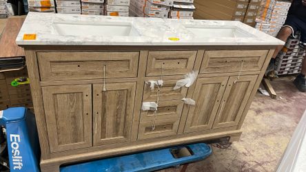 Home Decorators Collection Doveton 60 in. Double Sink Freestanding Weathered Tan Bath Vanity with White Engineered Marble Top (Assembled)$729Glendale, AZ