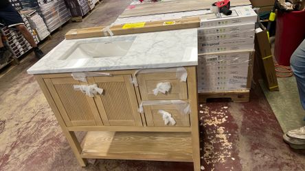 Home Decorators Collection Arcott 37 in. Single Sink Fluted Natural Wood Bath Vanity with White Carrara Marble Top (Assembled)$650Glendale, AZ