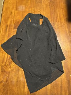 by & by Black Sheer Blouse Top Size L Asymmetrical Hem Polka Dot Embellished$12Glendale, CA