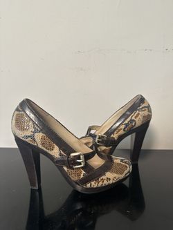 Micheal Kors Snakeskin Heels 6.5M Brown Leather T-Strap Pumps Buckle High Heel$49Glendale, CA