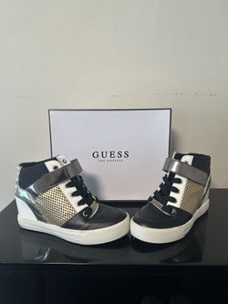 GUESS GWDIZA Wedge Sneakers Women’s Size 7M Black Gold High Top Logo Lace Up$34Glendale, CA