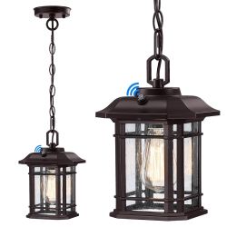 10.25'' Dusk to Dawn Outdoor Pendant Lights for Porch, Exterior Hanging Lanterns, Farmhouse Outdoor Ceiling Light Fixture, Waterproof Tempered Seed Gl$45El Monte, CA