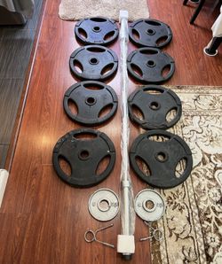 🚚 FREE DELIVERY 🚚😳 ((CAP)) 😳RUBBER WEIGHT SET WITH Brand New BARBELL TOTAL WEIGHT 415 LBS$415San Dimas, CA