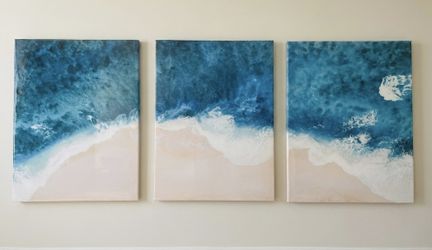 Modern Coastal Wall Art Set Of 3 - Turquoise Sea & Sand Triptych $25Yorba Linda, CA