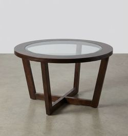 Large 42" Round Coffee Table - Dark Wood & Glass - Cross Base$65Yorba Linda, CA