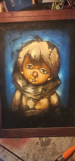 1970s Vintage Velvet Crying Clown Boy Painting Signed$40Port Orchard, WA