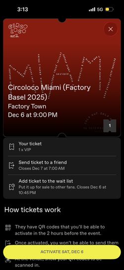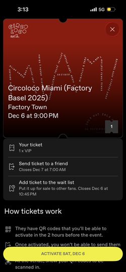 Selling VIP Circo Ticket Miami$360Miami Beach, FL