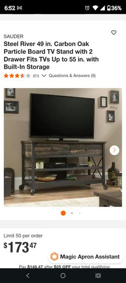 Steel River 49 in. Carbon Oak Particle Board TV Stand with 2 Drawer Fits TVs Up to 55 in. with Built-In Storage$100Kemah, TX