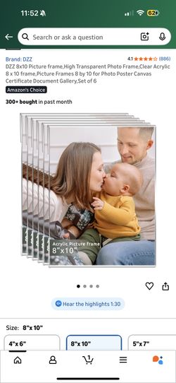 Brand New 6Pck Clear Acrylic 8x10 Picture Frames $8Chandler, AZ