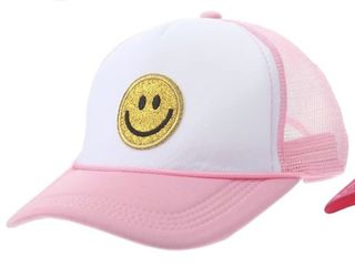 Fashion Smile Face Sequins Baseball Cap Printing Neon High Crown Foam Mesh Back Trucker Hat-for Men and Women