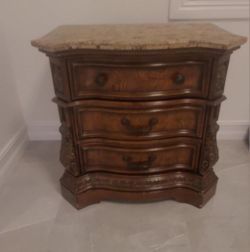 Mesa De Noche Perfectas Condiciones. Madera Pura Y Marmol Real. ( No La Nesecito. Cambie El Estilo En Mis Muebles$150Hialeah, FL