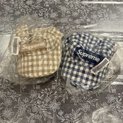 Supreme Gingham Camp Caps - Tan /Navy Blue$60San Diego, CA