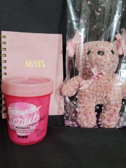 Pink Crochet Teddy Bear+Pink Small Journal+ PINK Rose Water Body Scrub Gift Set.$20Laredo, TX